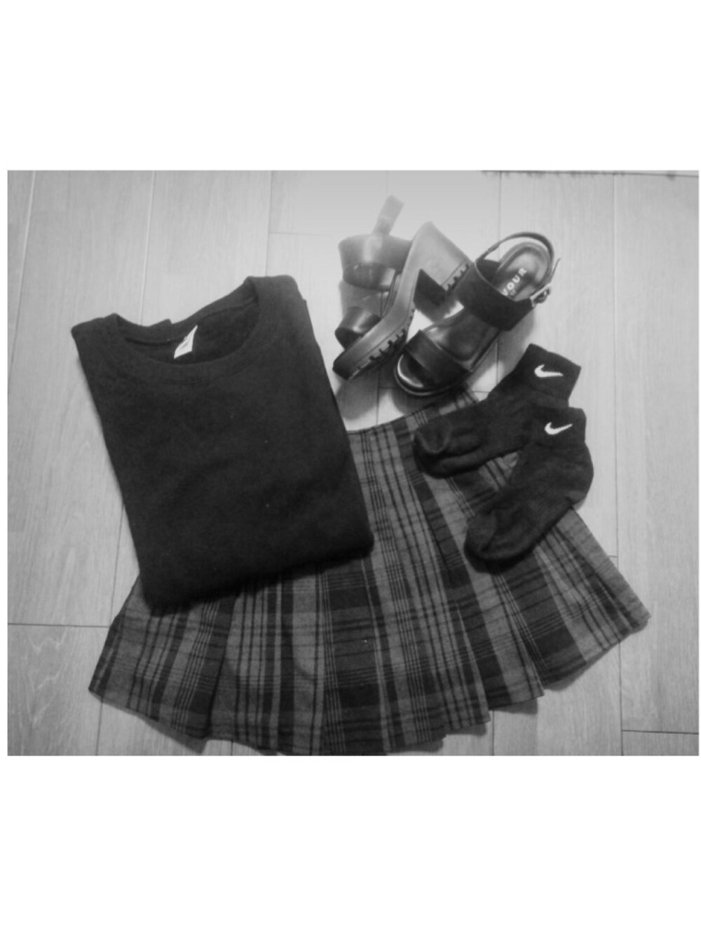 全体的にモノトーンでまとめました! スカートは韓国っぽくプリーツスカート にして学生っぽさを出しました!