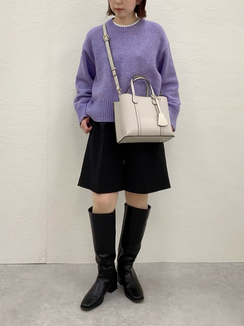 ご覧頂きありがとうございます☺︎ 今日はパープルのニットが主役の 大人カジュアルコーデ。 パープルニットにライトグレーのバッグが とても合う!!! シンプルでコーディネートを選ばないので デイリーにおすすめです。 黒いバッグを持ちがちですが、明るい色にするとコーディネートが一気に華やぎます♪