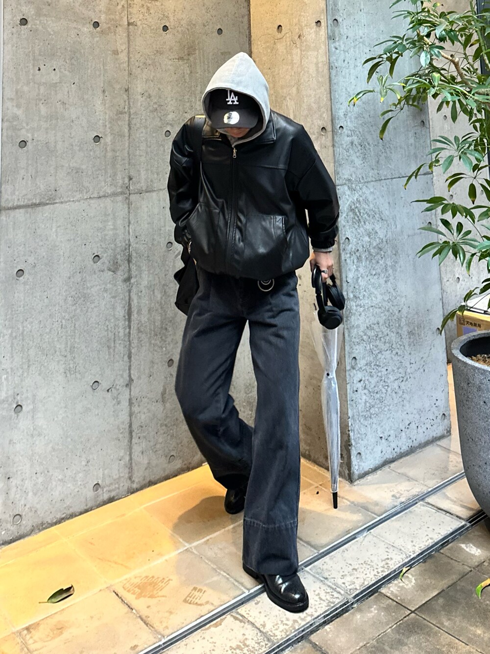 Iラインシルエットを意識してスタイル良く見えるようなコーディネートに! ブラックのアイテムを多めに使ってより大人な雰囲気に⚫️