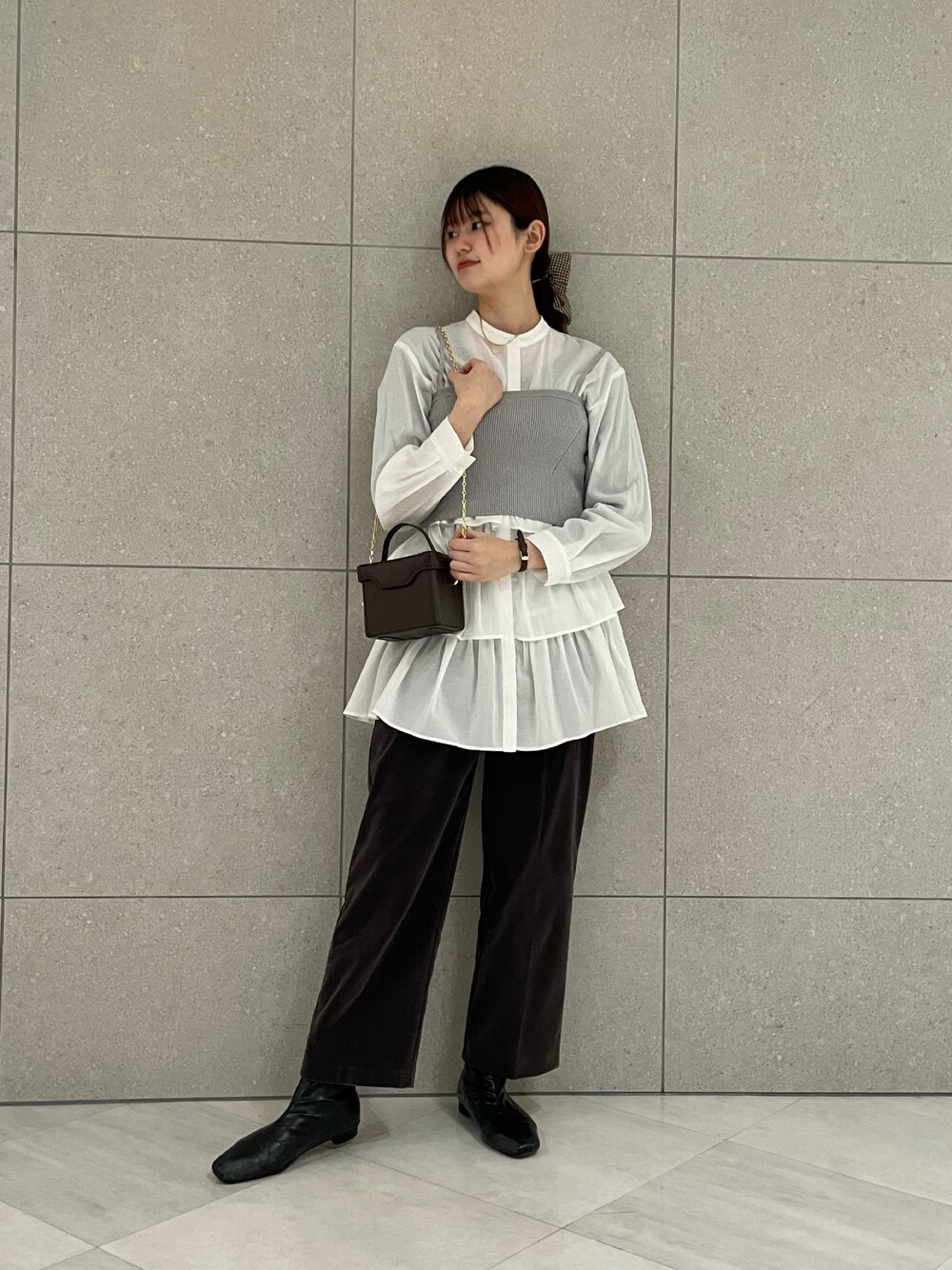 ご覧頂きありがとうございます🐑 ティアードのトップスに ビスチェを合わせてボリューム感を おさえました🫶🏻 ウエストマーク必須の骨格でも短めのビスチェと合わせるとティアードのブラウスが着れちゃいます⸜🌷︎⸝