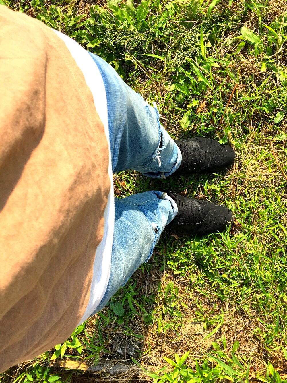 今日も鬼暑〜😥💦💦 急いでデニム履いたら ダメージ部分に引っかかって 穴が広がりました🙄🙄 それもまた味です😞 今日からテスト〜、老年がんばろ