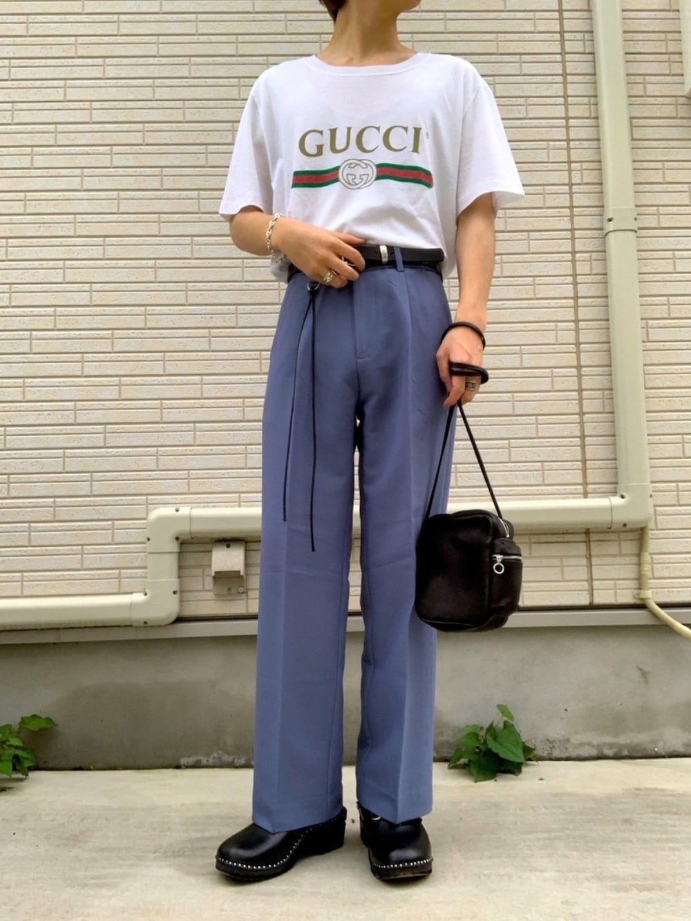 sのTシャツ/カットソー「Gucci Distressed Printed Cotton-Jersey T-Shirt」を使ったコーディネート