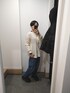 GUセール品のかごから戦利品! 普段こういう格好しないから自分の中では新しい✨ 髪型変えると似合うもの変わってたのしい🥳