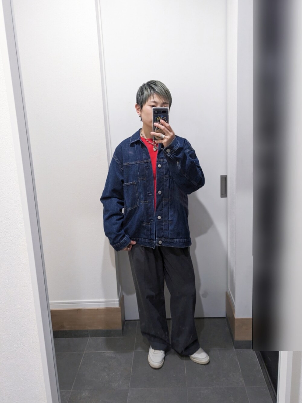 デニムとスウェットで赤×青🔴🔵