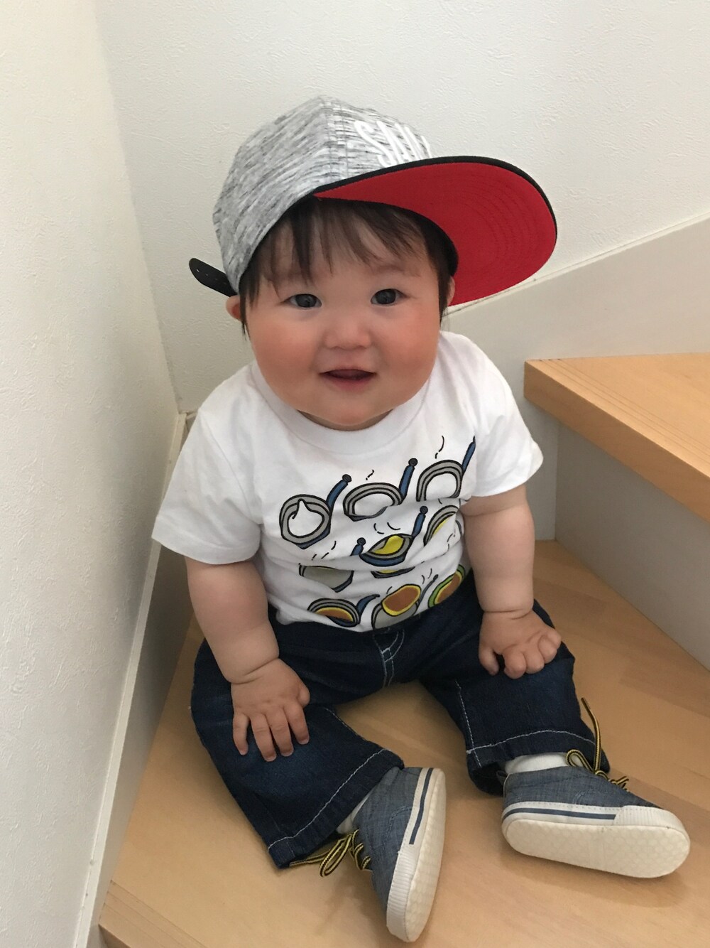 アプリがうまく起動できなくなってからだいぶ放置してました。また皆様のところにお邪魔させて頂けたらとおもいます💦 その間に息子も1人で座れるように。 そしてついに!ついに!帽子を嫌がる事なく被ってくれることも! マシュマロ男子の息子なので、オーバーサイズがちょうどいい感じです。