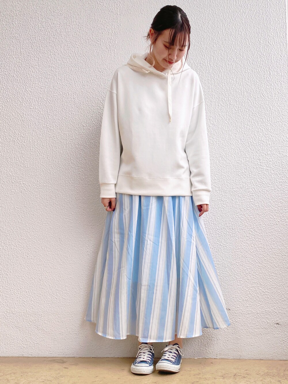 ご覧頂きありがとうございます! Techichi TERRASSE出勤コーデです! 肌触り、気心地抜群のダンボール素材は 私もとってもお気に入りのアイテムです🤍 ブルーストライプで爽やかな印象に𓂃🌿𓈒𓏸