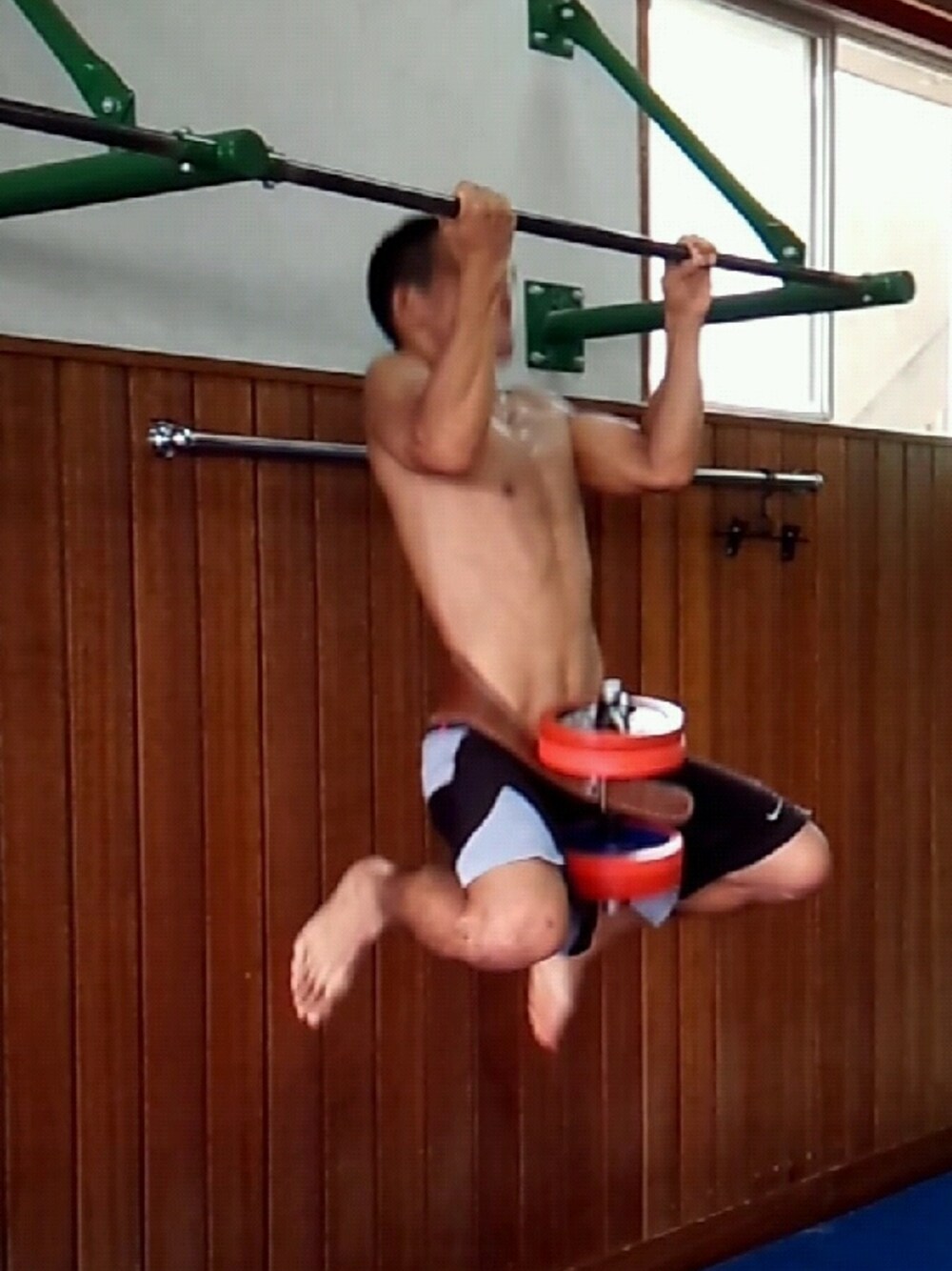 ポイントも何もないのですが・・・ 服を着るにも下地は重要かな?と思います。バーベル25kg巻きつけて懸垂10回×3セット☆