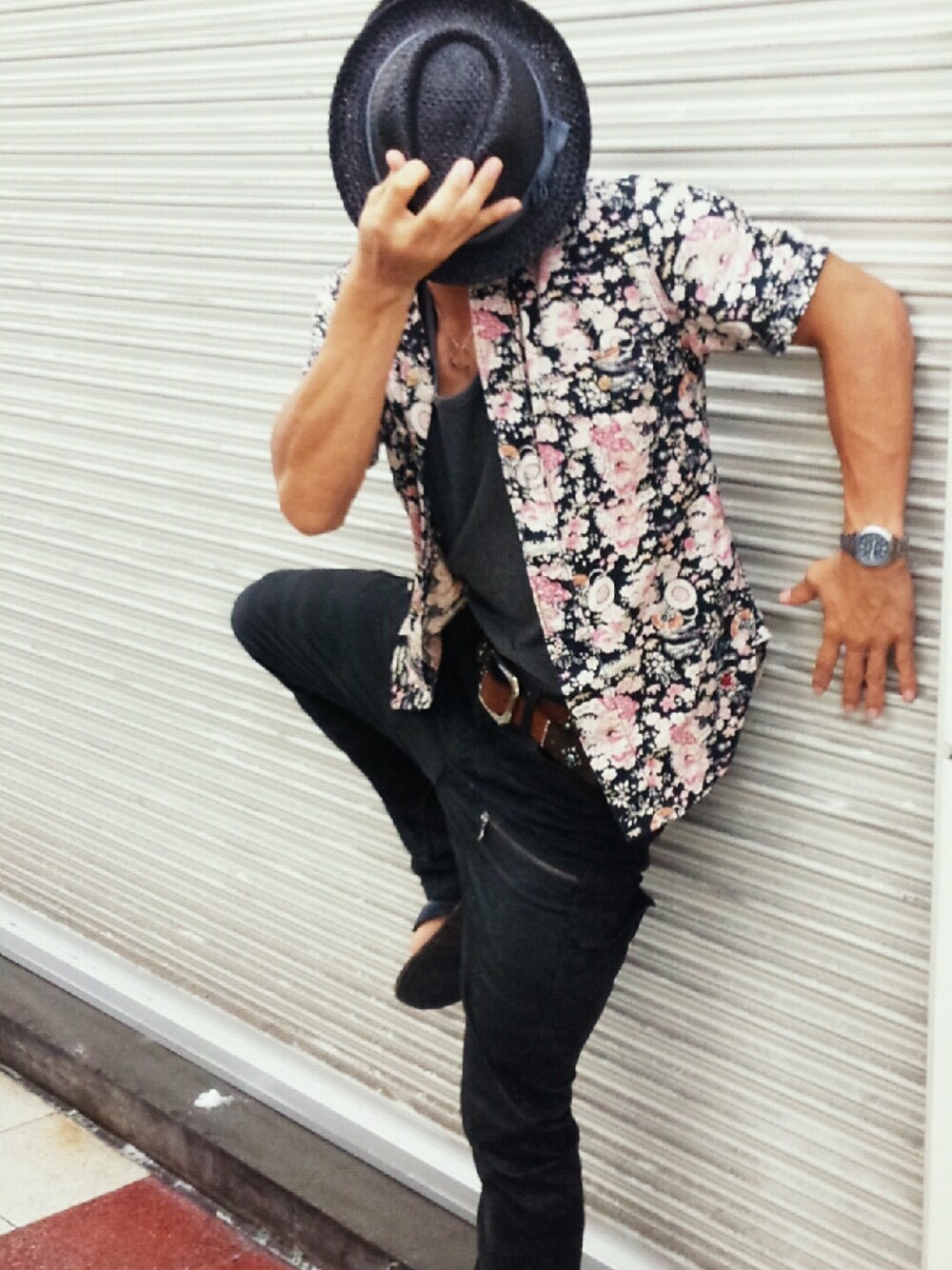 閑散とした地下飲み屋街にて。 ひっそりと身を潜めていると・・・ 突然当てられた眩しすぎる懐中電灯! ヤバいっ!! 見つかっちまった、逃げろ~ って感じの一枚です。 和柄のシャツ気に入ってます。 生地もしっかりしてボタンは竹でできているんですよ~ ベルトもハンドメイトの温かみとデザインが好きです。 お酒も好きです。 すでにできあがってます(笑)