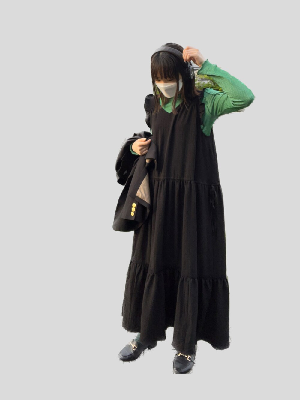 インナー緑バージョンのキャミワンピ❕ ワンピ、肩のふりふりがたまらん、、🤍