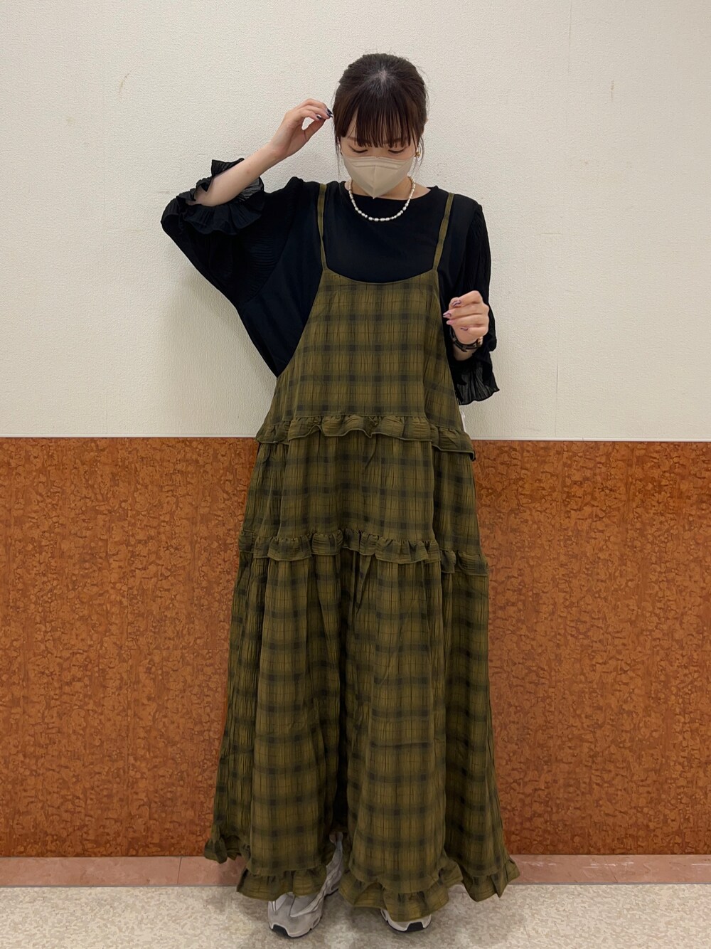 個人的にめちゃくちゃ好きな秋コーデ🍂🤎 フリルのデザインが女の子っぽいけど、 落ち着いた色でバランスよくてお気に入り〜🥳 後ろで長さ調節できるので、 身長問わず誰でも🙆♀️🤍
