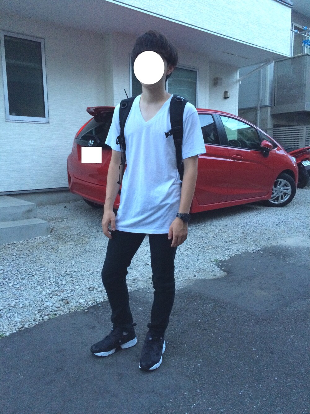 閲覧ありがとうございます 仕事終わって撮ったので暗くてすみません HANESのTシャツにGUのスキニー履いただけのコーデです。