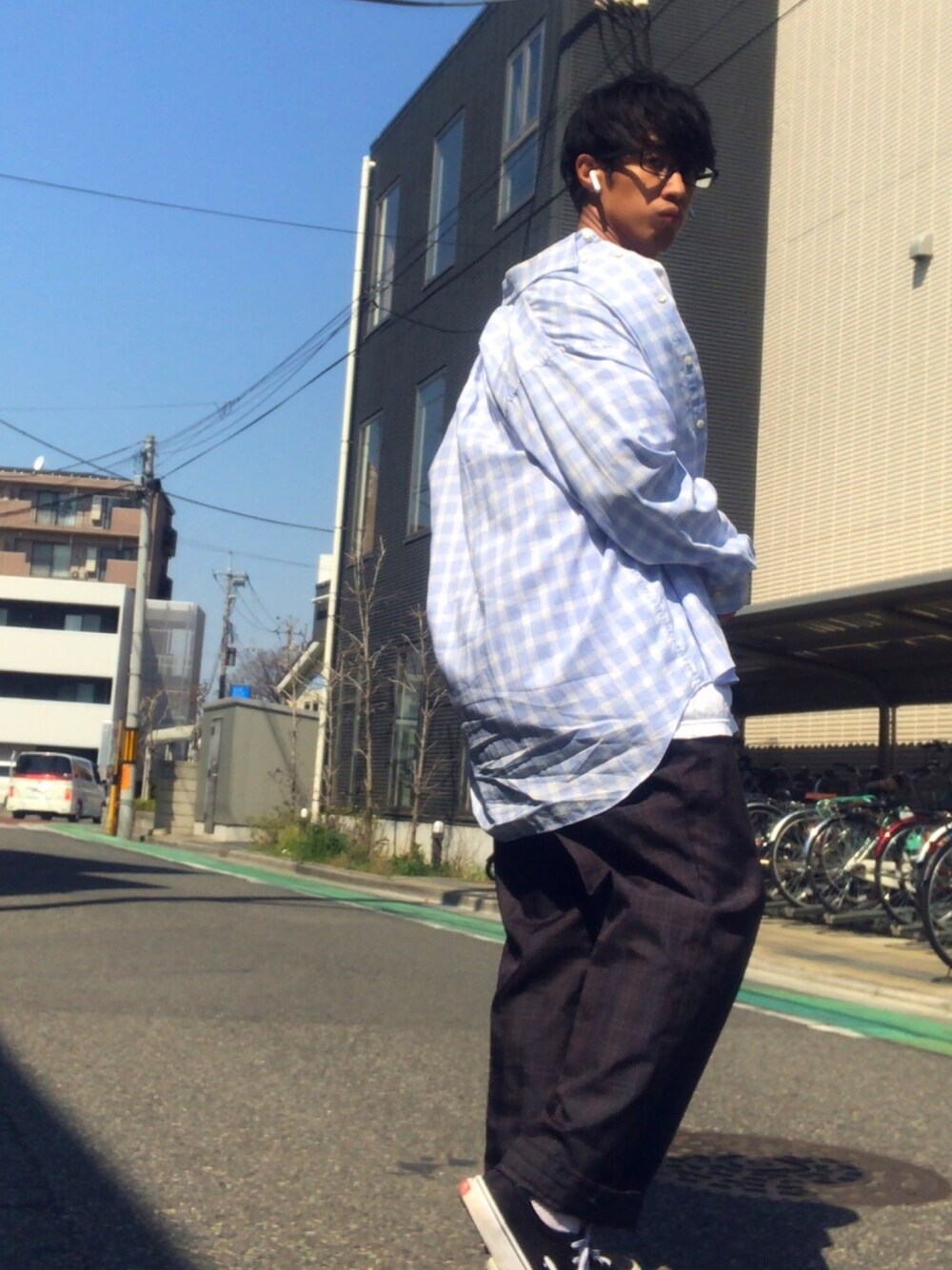 pick📸 春到来。 チェックシャツ×スラックス 抜群に合う💭 桜いつ咲くかな〜 お気に入り☝︎ Instagram @wear_toshiki0228