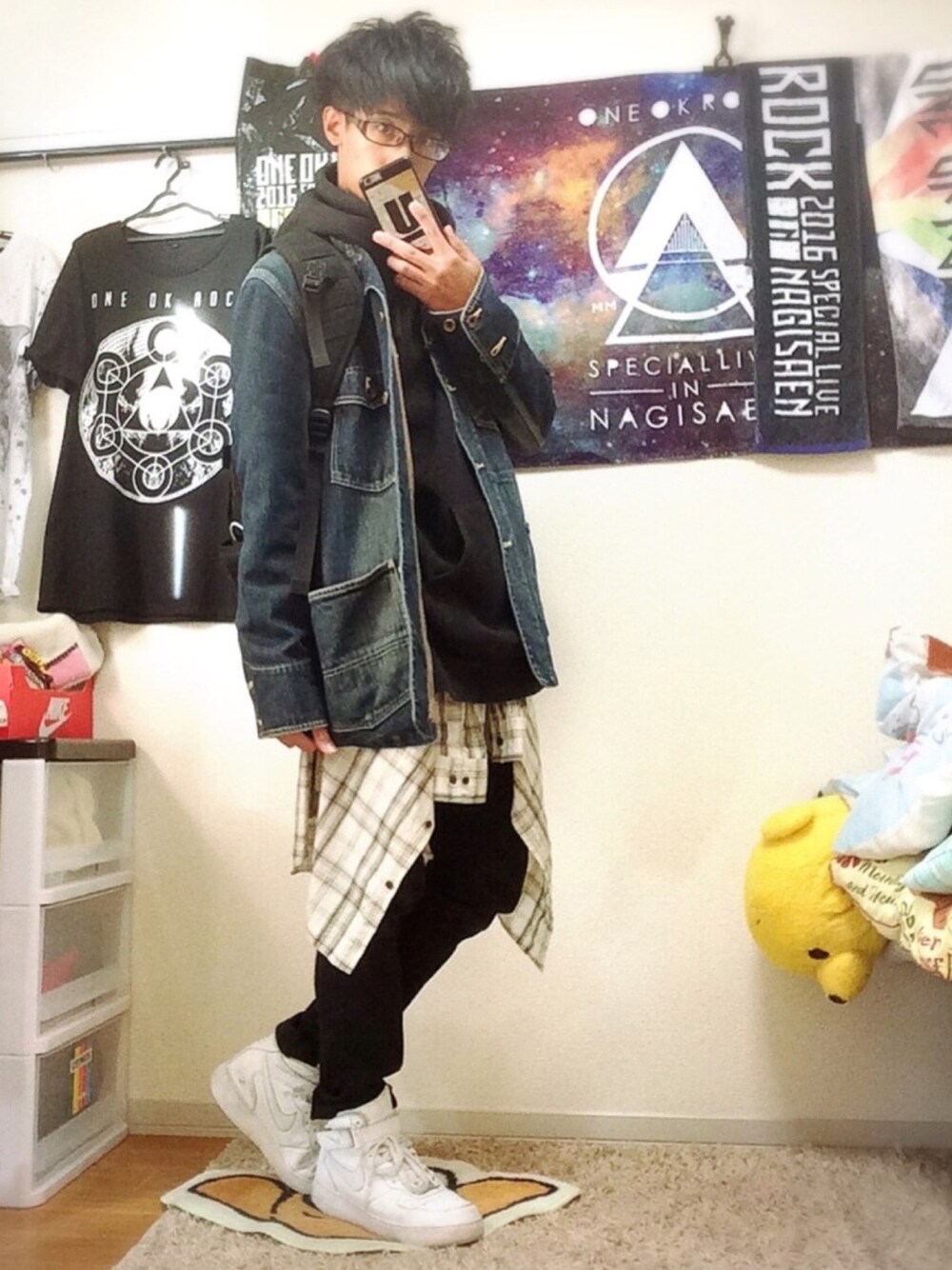 🔥Gジャン+streetコーデ🔥 第1弾! 久々のstreetコーデ落ち着いた感じにしました ロング丈Gジャンとパーカーと腰巻スタイルをトレンド ワンオク好きです^ ^フォローお願いします!
