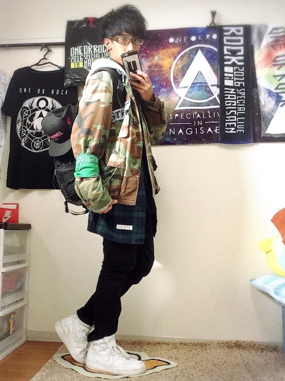 🔥カモフラ+streetMAXコーデ🔥 第3弾! 全体的にstreetスタイルにしました! OFF-Whiteもトレンドして自分のお気に入りのスタイルにしました^ ^ バンダナは☆アイテム! NO street NO Life!