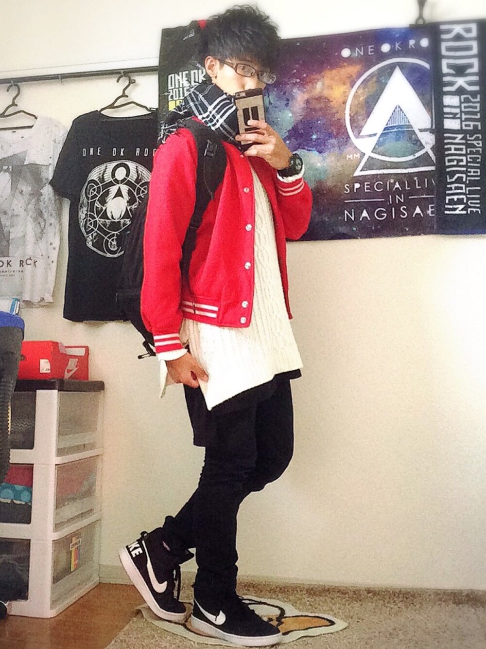 🔥スタジャンコーデ🔥 第1弾! 久々の白ニットに【I】ラインをいれstreetスタイルにしてみました^ ^ 仙台にある古着屋(CIIMB)で去年スタジャンを購入して久々に着ました 第2弾と第3弾もお楽しみに^ ^ ワンオク好きです!フォローお願いします!