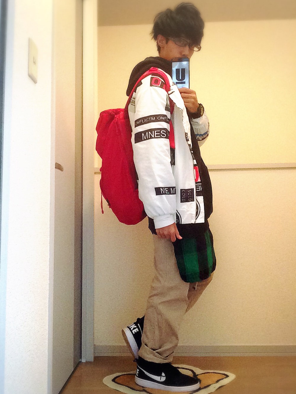 🔥streetコーデ🔥 MA-1柄がすっごくお気に入りです☝︎ new eraのバック🔥 もう少しで春の訪れですな〜 今日のポイントは腰巻を前腰巻にしました^ ^ 今日も学校頑張ります^ ^ @tskoor28 あともう少しでフォロワー100人!フォローお願いします(>人<;)