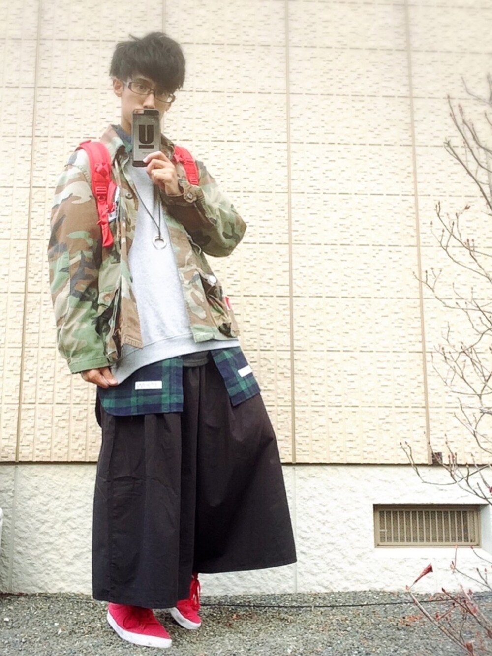 🔥ミリタリー×ガウチョコーデ🔥 今回はガウチョを使用したコーデとなっております☝︎ 中は温かめの首まわりヒートテックにスウェットを着込んでいます off-Whiteのシャツを着て軽めのstreet感!そして自分でR'makeしたミリタリージャケットを着ました^ ^ 古着 off-White ミリタリージャケット WEGO(R'make) ガウチョ adidas