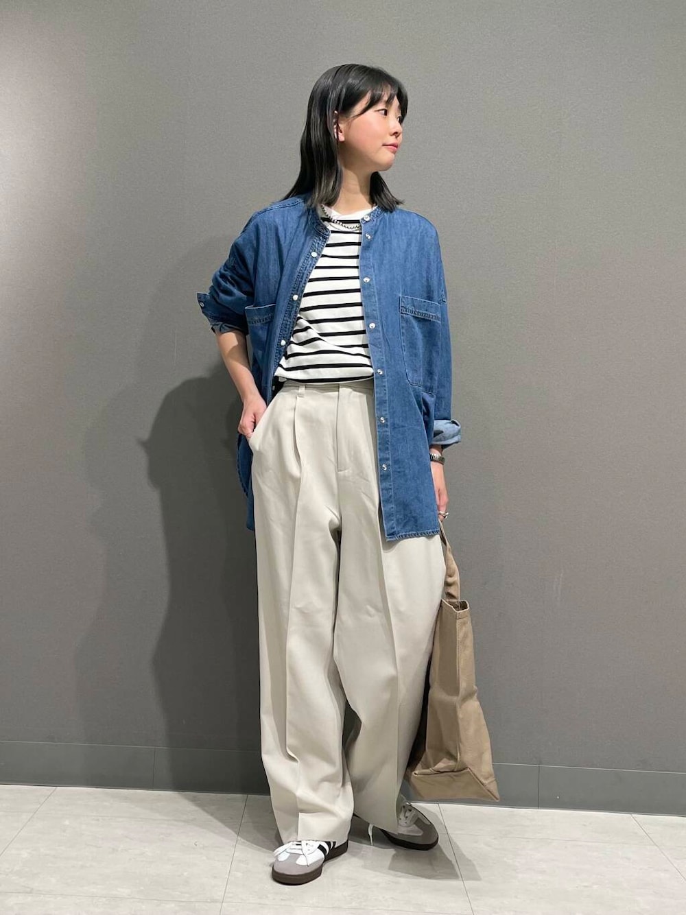 優菜(DOORS ジョイナス横浜)のシャツ/ブラウス「デニムバンドカラーシャツ」を使ったコーディネート
