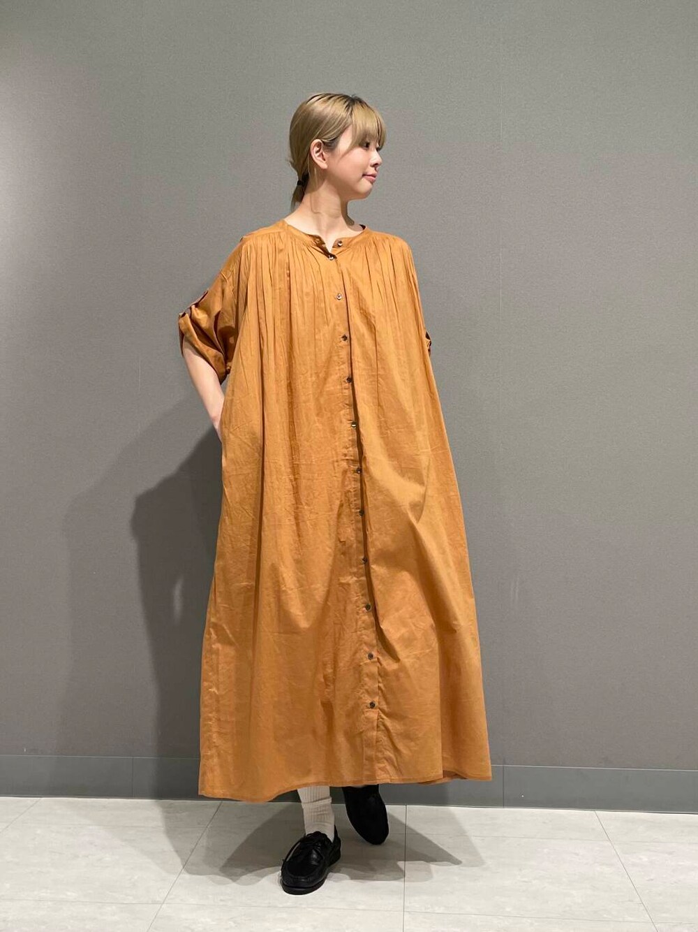 優菜(DOORS ジョイナス横浜)のワンピース「コットンボイルロールアップハーフスリーブワンピース」を使ったコーディネート