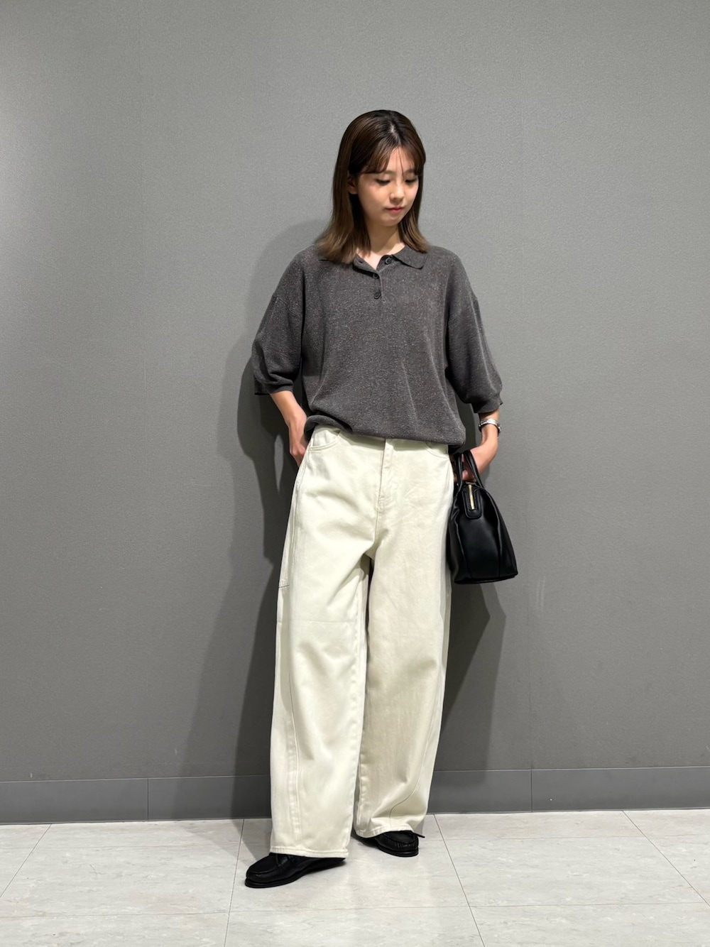 毎年好評のニットポロシャツ✨ 軽めのニット素材で暑い時期からでも着用できちゃう万能アイテムです! 半袖よりも袖が少し長めなのでこれからのシーズンにもぴったり◎ チャコールのカラーはネップのような生地感がお気に入りです😊
