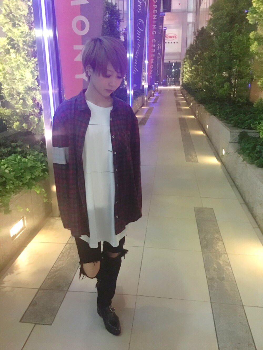 夜はまだ涼しいから1枚羽織るのに大活躍のチェックシャツ!ゆったり着れる形で袖のアクセントもお気に入りで一目惚れ! インナーはシャツより長めのTシャツでレイヤードを楽しんで✨ クラッシュスキニーと靴で引き締めて♡