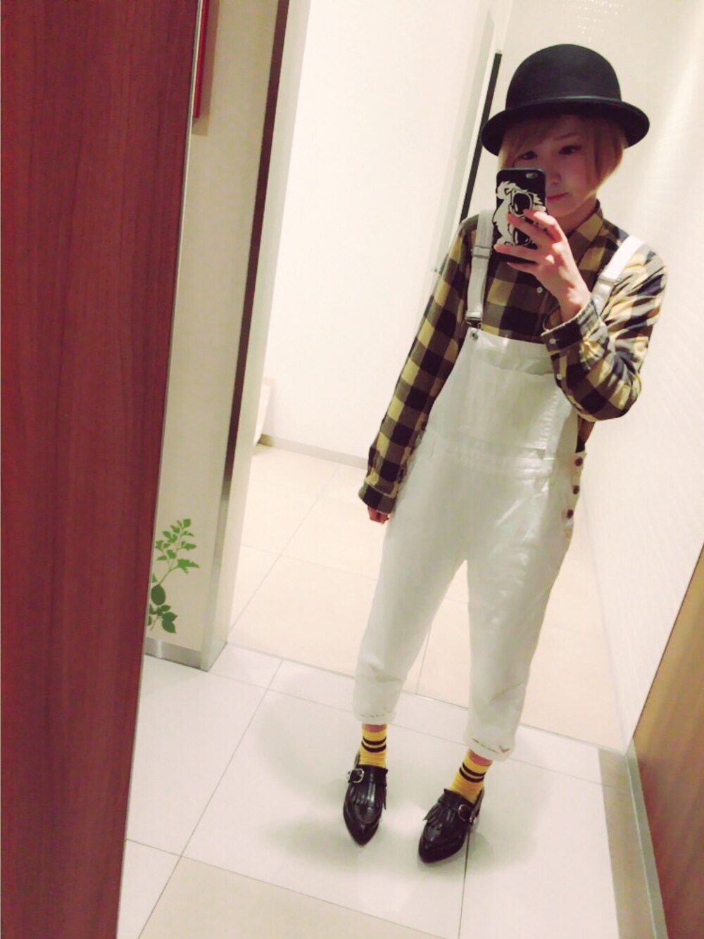 大道芸人みたい!夏らしく白サロペット!!!!!ハットと靴でカジュアルになりすぎないよにしました🙂