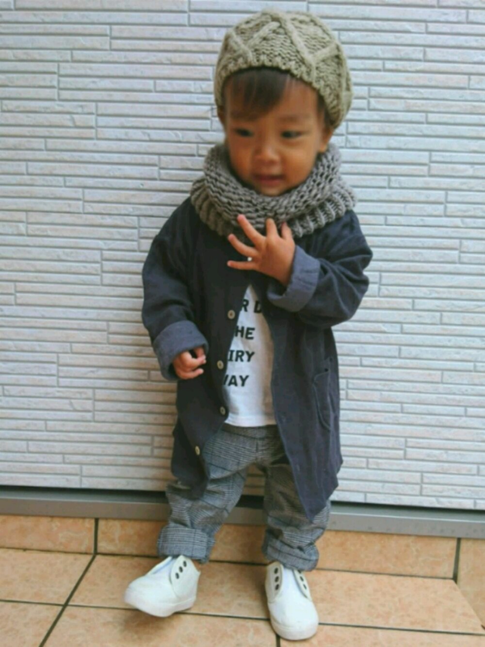 見て頂きありがとうございます♪ いいね♡などなどとっても嬉しいです♥️ 今日もいつものシンプルゆるっとです🌼 こういう服装大好きです♥️ セリアのニット帽メーカーで作ったスヌードを着けてもらいました* これがきっかけで編み物にはまったかも?? 帽子編みすぎて旦那に「こんなに帽子いる??😏」と言われる始末😂 ごもっともやけど😏 でもまだまだいろんな色が欲しい母😂😂