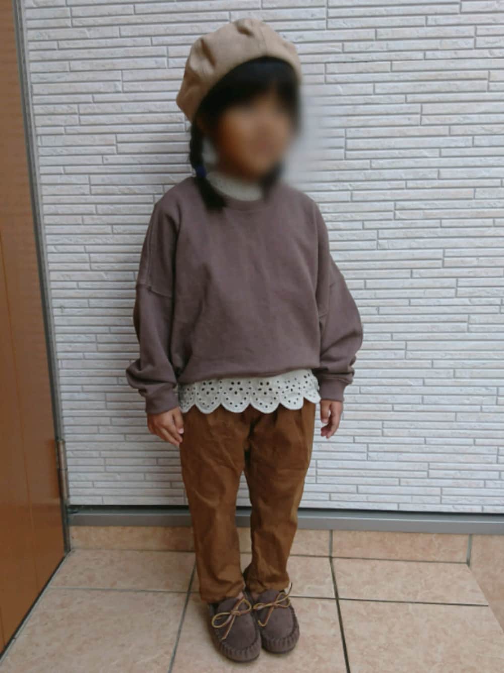 見て頂きありがとうございます😊 ブラウン×ベージュ♥️ ゆるゆるスウェットにフリフリブラウス🌼 最近フリフリ好きな娘☺️ それにしてもこのスウェットもブラウスも合わせやすくて万能👌 娘もあと1週間で5歳.... 本当に早いなー♥️ お祝いは今週末🍰 プレゼントと ケーキの注文以外、何もしてないからいろいろ準備しなきゃな~♥️