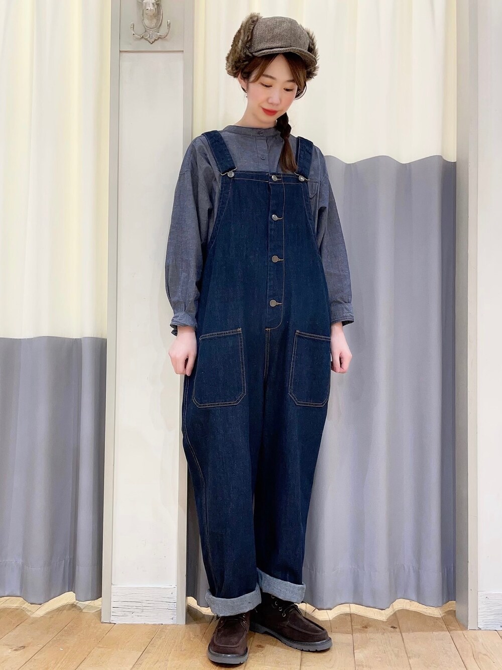 こんにちは* 閲覧頂き、ありがとうございます😊♪ 9月も下旬に入り、そろそろ長袖の出番ですね🌟 今回はデニムのサロペットにバンドカラーのシャツを合わせて、ブルーのワントーンコーデにしてみました💙 フライトキャップやショートブーツで、一気に秋の装いに🍁 秋小物の新作も多数入荷しています🐑 小物から秋物を取り入れるのもオススメですよ🙆♀️ ご来店お待ちしております❁