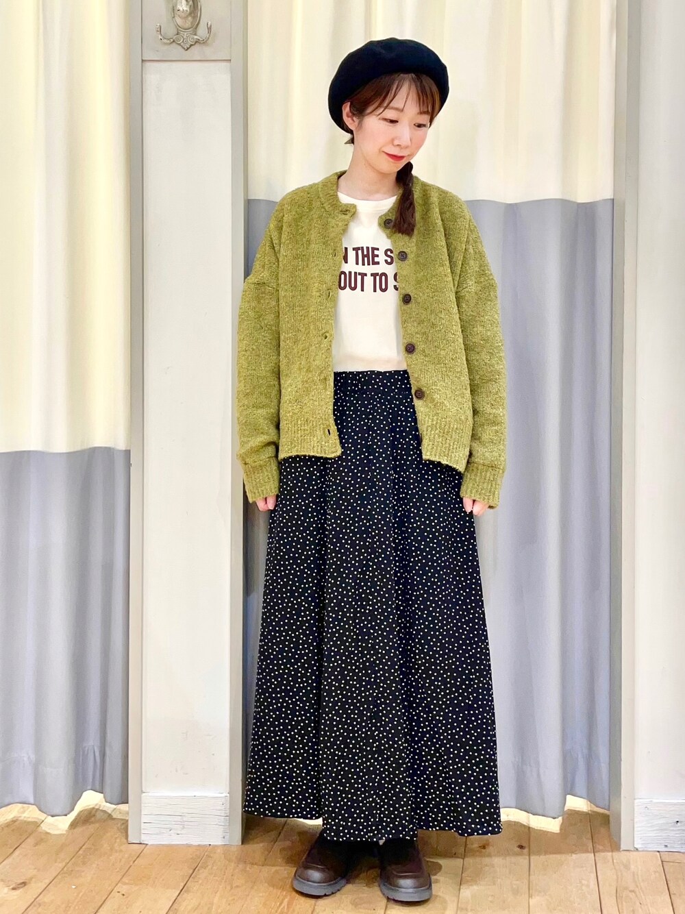 つぼもとまいのハンチング/ベレー帽「杢バスクベレー帽」を使ったコーディネート