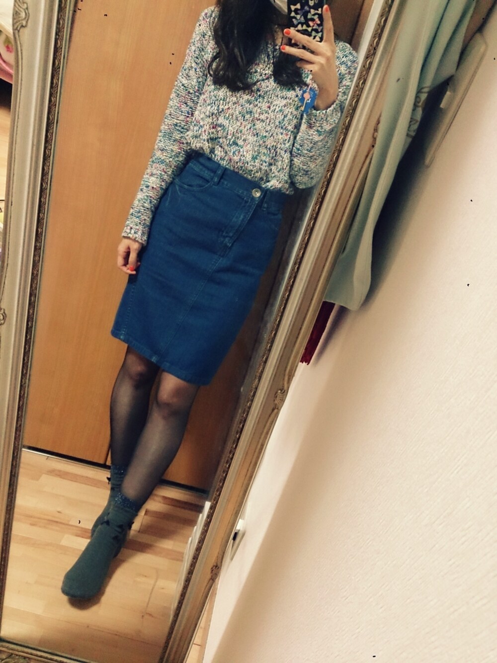 大好きなJEANASISでコーデ。mixニットはカラフルなんです。
