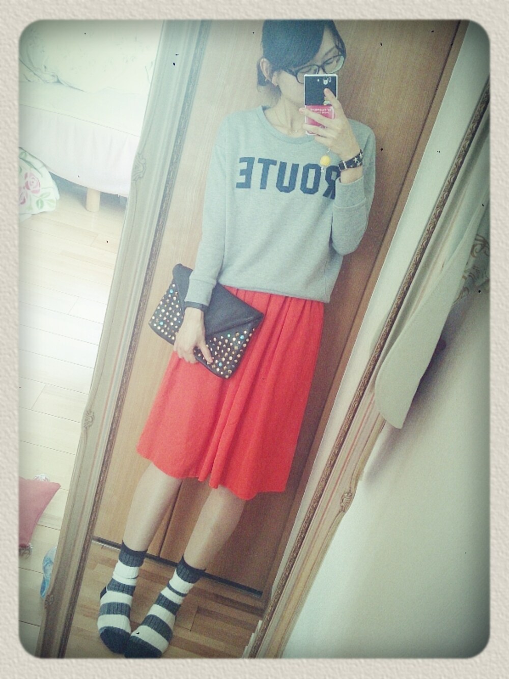 きょうはお休み♪ 前回、色違いで買った赤いskをはきました。 スウェットでゆるゆるこーで。 靴は初おろし! ロゴスウェット…レトロガール シューズ…MONKI