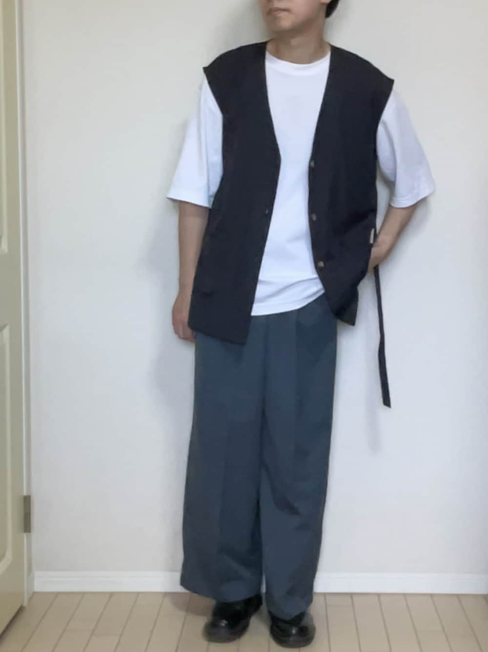 少し時間が経ってしまいましたが、投稿再開します。 今回はジレとワイドスラックスを合わせたIラインシルエットのキレイめコーデを組みました。