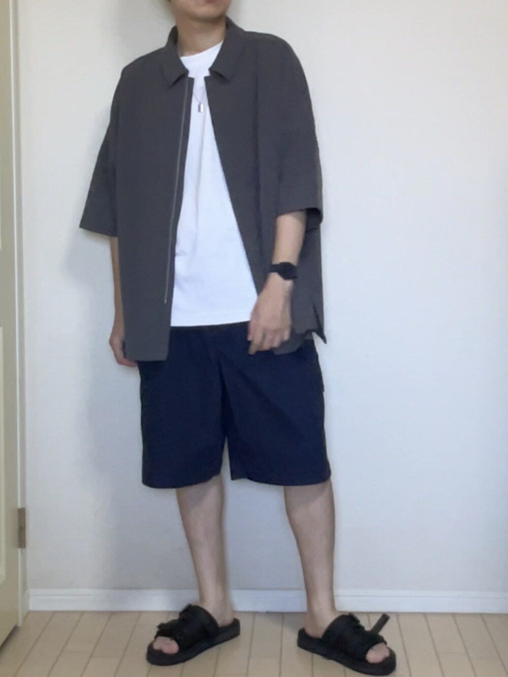 UNIQLOのハーフパンツを使った夏コーデです。