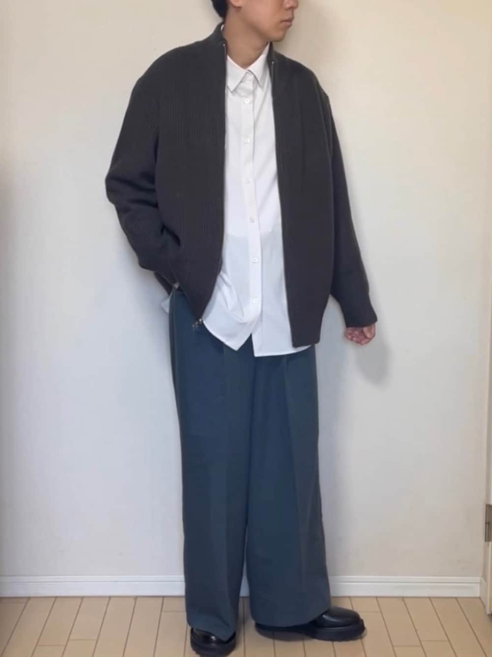 ちょっと暖かい時には、ドライバーズニットをアウターに。