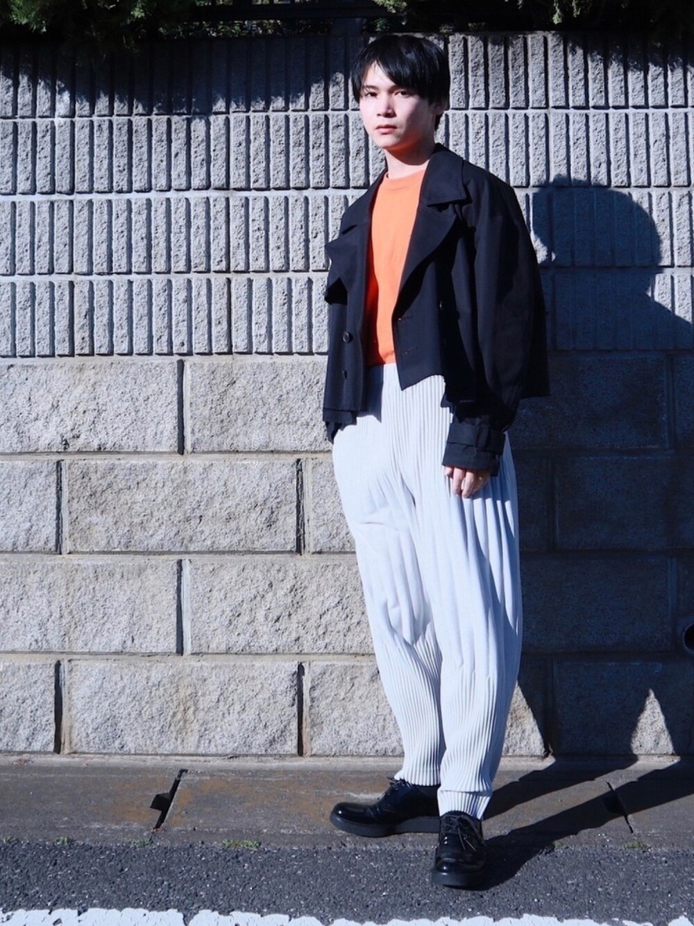 ◆code◆ ............................................................... 決め過ぎない綺麗目コーデ✨ 【ポイント】 ジャケットをショート丈にする事でパンツのプリーツを目立たせています👖 差し色のオレンジでコーデを明るく春らしく。 ジャケットや革靴の綺麗目のアイテムに対してカットソーやパンツでラフさを出しています🙃 このパンツは真ん中と下の部分でプリーツの大きさが違うのが特徴的です。 上品なアイテムと合わせるとまとまりやすいです⭕️ ...............................................................
