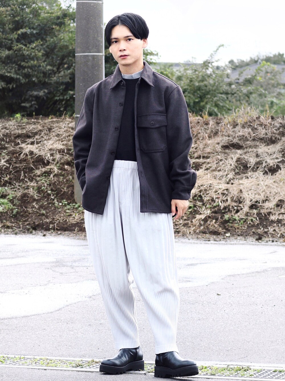 本日も見て頂きありがとうございます😊 コーデやそのポイントについて紹介します✨ 【コーデ】 ✔︎フリースシャツ×プリーツパンツ CPOシャツの様なディテールのシャツにプリーツパンツを合わせてモードカジュアルなコーディネート✨ 【ポイント】 ➊プリーツパンツでコーデに動きを ・ ・ 立体的なパンツを合わせてスラックスと合わせた時とは違ったきれい目感を演出しています。 パンツ自体が肌につかずにストレスフリーで履けるので機能的にも⭕️ ➋色味を抑えて ・ ・ 全体のほとんどを黒・グレーでまとめ統一感を出しています🙃 又シャツはダークブラウンなので程よく色味が出せて尚且つモノトーンと馴染んでくれます✨ ........................................................................ 【instagram】:@tsufashion_mode04 『日々のファッション』をテーマに様々な服を自分なりの形で組み合わせています🚶♂️ またwearにはない置き画投稿やコーデ写真も投稿しているので是非遊びに来て下さい🤲 ........................................................................ お仕事の依頼等はインスタのDMまで✉️