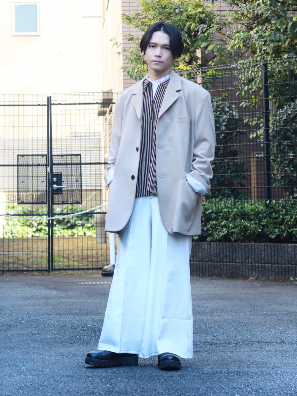 いつも、いいね、フォロー、お気に入りありがとうございます😊 コーデとそのポイントについて紹介していきます❗️ ✔️ベージュジャケット×白パンツ ・ ・ ベージュジャケットと白フレアパンツを合わせた春コーデになります✨ 白のフレアパンツのシルエットが良すぎてオススメだしお気に入りです❗️ 【ポイント】 ➀ベージュジャケットにベージュのシャツを合わせる事で統一感を。 シャツは柄物にする事でアクセントの効いたコーディネートに仕上がっています😊 ➁白パンツで一気に春らしさを。 フレアシルエットなのでオーバーサイズのジャケットとも相性抜群❗️ ➂ジャケットを脱ぐと半袖と長袖のレイヤードでカジュアルさを出しています。 足元はブーツで合わせているのでカジュアル過ぎず、適度に上品さを残しています♪ 【プラス】 ジャケットみたいに綺麗めアイテムは相変わらず好きなのですが、今回レイヤードしているようなカジュアルな合わせや白アイテムの多様など春らしさが出て最近は白とかカジュアルな合わせにハマりつつあります✨ 今後スニーカーなど合わせたカジュアルスタイルも投稿増やしてくので是非見て頂けると嬉しいです😊 ではまた🤚