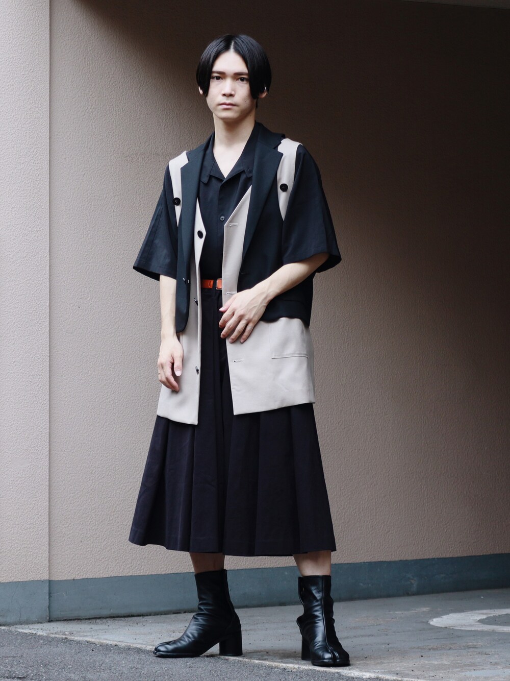 ✔️レイヤードベスト×ハカマガウチョ×ブーツ ・ ・ 今回はレイヤードベストにプリーツガウチョパ ンツを合わせ、ブーツを足元に加えたコーデをしています✨ 【ポイント】 ➀ブラックコーデにレイヤードベストを合わせる事で個性的なスタイルに。 ➁合わせているアイテムがワイドパンツや丈の長いベストなので、ベルトを合わせてメリハリを。 オレンジ色なので差し色にもなります。 ➂ガウチョの様な丈の短いパンツにブーツを合わせて夏のモードらしさを出したコーデに。 【プラスで】 夏でもブーツスタイルをしたい人は ハーフパンツやガウチョパンツの様な丈の短いパンツと組み合わせると暑苦しくなくてオススメ🔥 肌の露出もあって涼しくので是非夏に😊 …………………………………………………… 【Instagram】: @tsufashion_mode04 『自分らしいファッション』をテーマに様々な コーデや洋服を提案しています🚶♂️ wearにはない写真も投稿しているのでそちらも是非チェックしてください‼️ またお仕事等の依頼はインスタのDMまでお願いします。 ファッション系は大歓迎です✨ ……………………………………………………