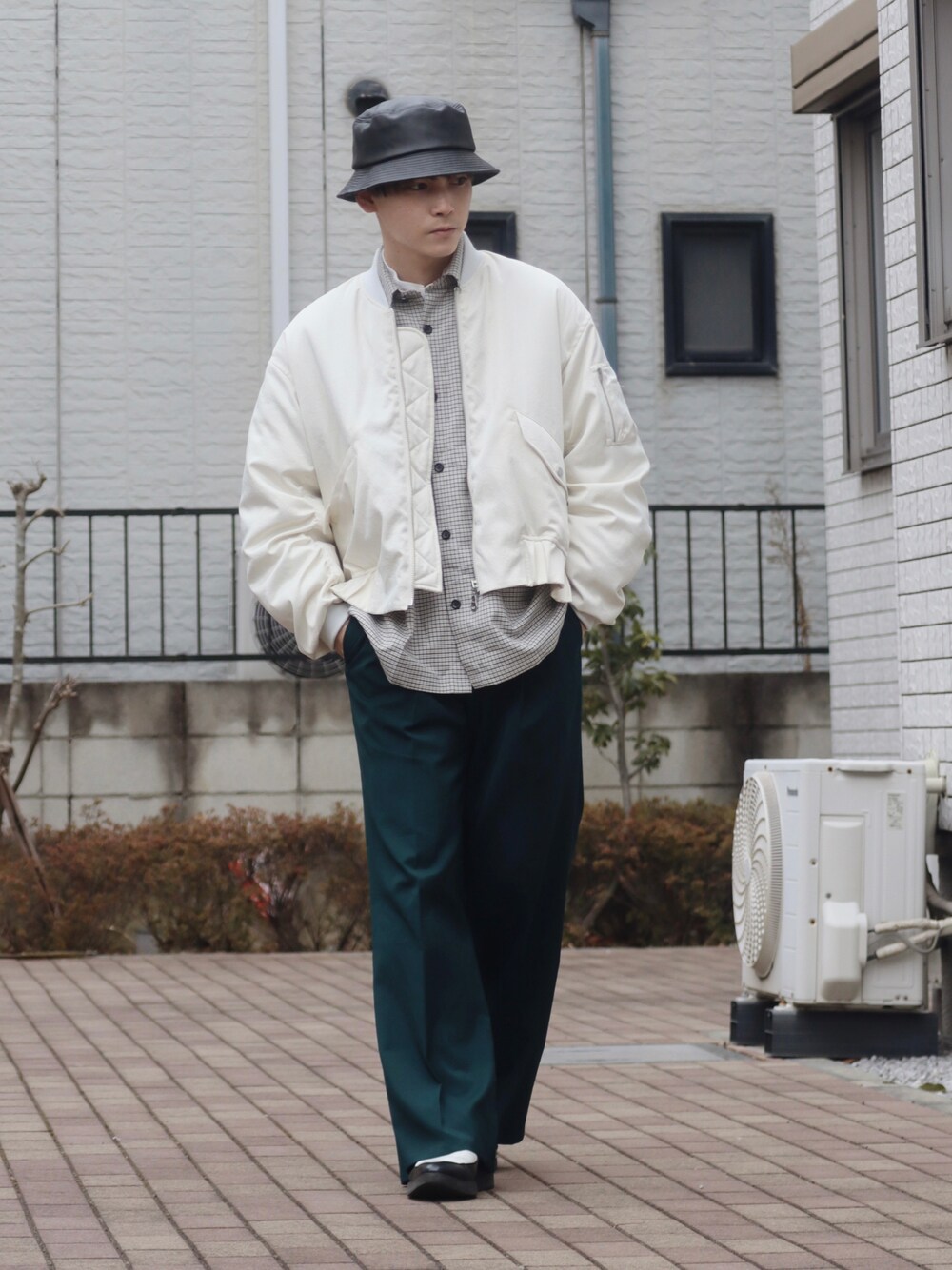 ・ ・ 白のMA-1をメインに使ったきれい目カジュアルコーデ MA-1を主役にフレアパンツを合わせて上品なスタイルに。 差し色を入れたかったので、パンツをグリーンに。 インナーはカジュアルさを出したかったので、チェックシャツを合わせています♪ このMA-1は春、秋の季節のアウターだけど、コートのインナーにも使えるので長い時期使えてこれくらいのアウターは重宝します😊 …………………………………………………… 【Instagram】: @tsufashion_mode04 『シンプルな大人モードスタイル』を発信しています wearにはない写真、動画を投稿しているのでそちらも是非チェックしてください‼️ またお仕事等の依頼はインスタのDMまでお願いします。 …………………………………………………