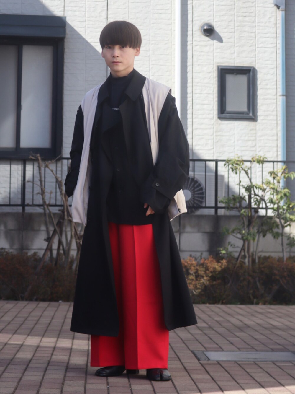 ・ ・ Instagram : @tsufashion_mode04 ロングコートにベストを羽織ったスタイル トレンチコートにスウェードベストを羽織って立体的なコーデにしてみました。 明るさを入れたかったので、赤のワイドスラックスをプラスしています。 冬から春に変わる時期なので、どこかに 春アイテムをプラスすると季節感が出て👍 カラー系はパンツから取り入れるのがオススメです♪