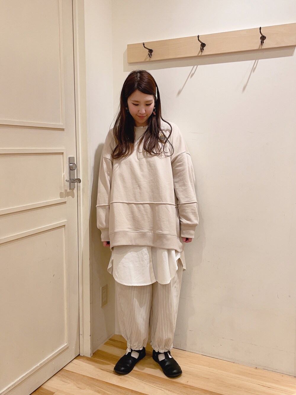 こんばんは☺︎︎ 春の先取りコーデです🌸 ボトムスは裾が絞ってありますが 裾の絞りを緩めるとワイドパンツにもなります🌿