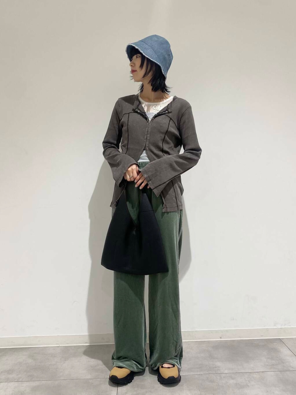 こんばんは! New arrivalのご紹介です! ビンテージ感のあるトップスとベロアのラインパンツで秋を感じさせるコーデを組んでみました。 チャコールグレーとくすみグリーンの組み合わせで大人っぽカジュアルに○ フロントホックから覗かせるコード刺繍でカジュアルになりすぎず、シルエットも細見えするのでオススメです♪ 是非チェックしてみてください! 店舗までお待ちしております