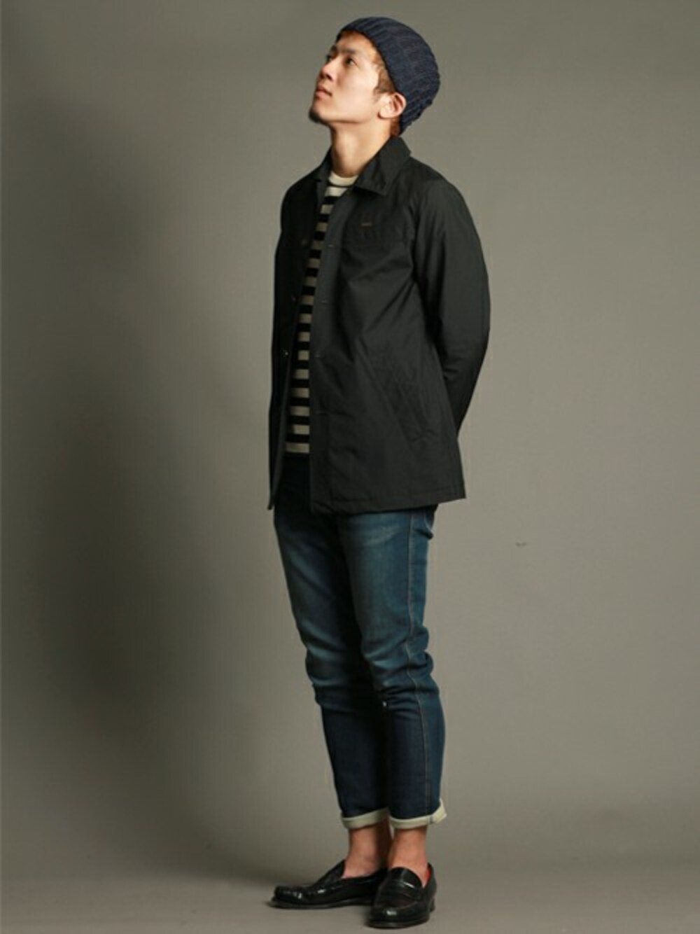秋を感じる気温なのでジャケットを羽織りました◎ ステンカラーコートはなかなか着こなしが難しいアイテムだけれど、デニムでカジュアルに、背伸びコーデ。。。 裾は少しだけ折るのがこの秋のワンポイント! ちなみにこのステンカラーコート、いわゆる【機能性素材】で、防水防寒に優れてるアイテム! 水も弾くのでこれからの季節にピッタリ。 ・・・ポージングも少し背伸び。。 ☆BEN DAVIS 2014 A/W コレクションはこちら!!→[http://zozo.jp/_search/search_result.html?p_tpcsid=61267&p_tsns=1]