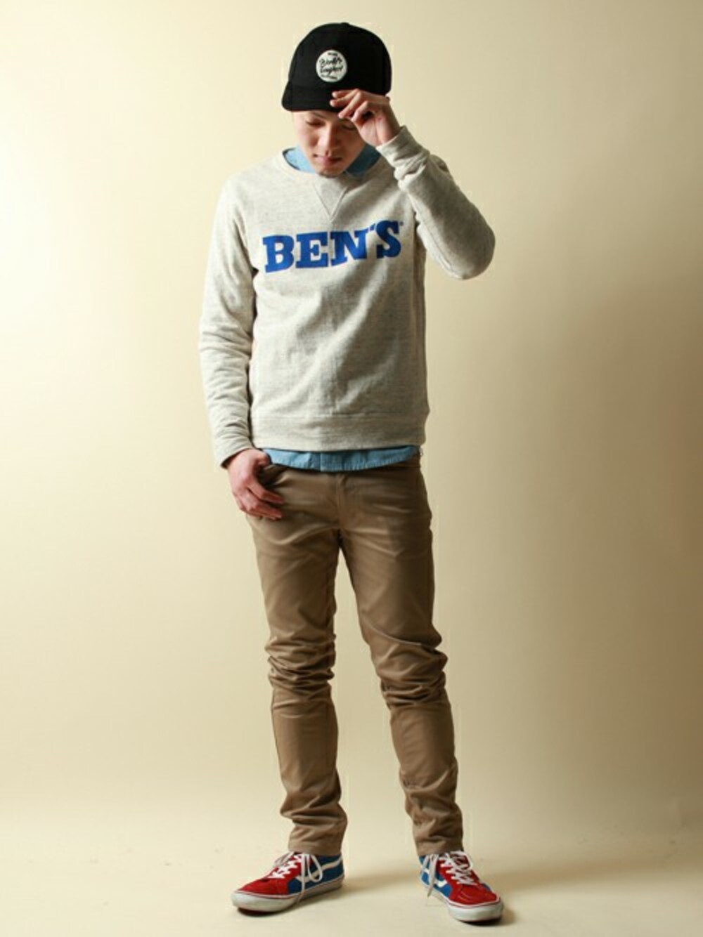 春になったらスウェット1枚で出かけることのできるコーディネート! ボトムスは明るい色で春らしく!