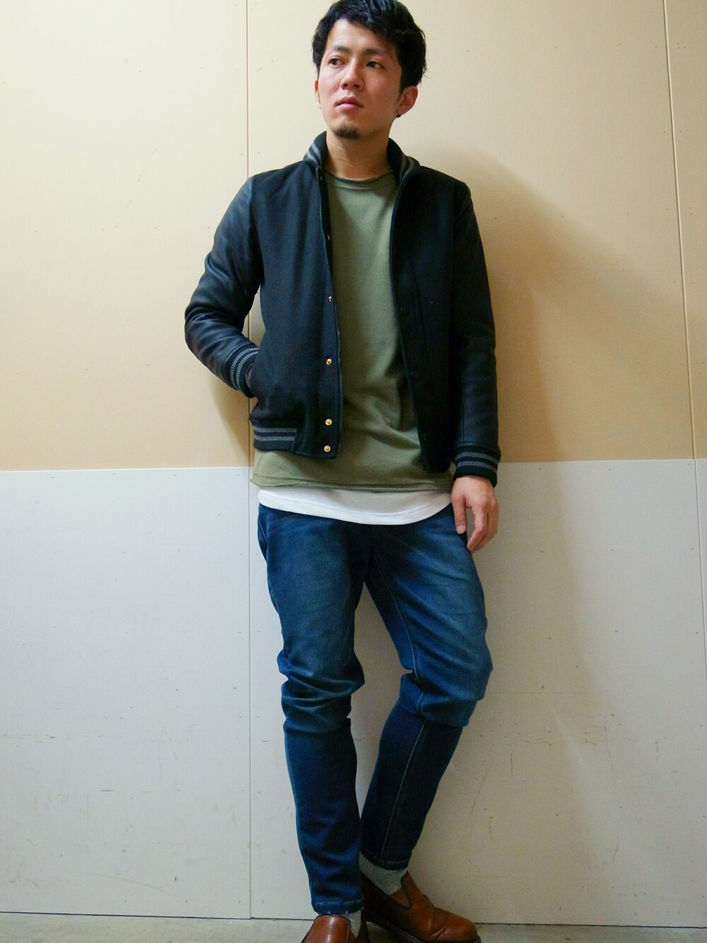 TSUCCHIEのスタジャン「メルトンスタジャン」を使ったコーディネート
