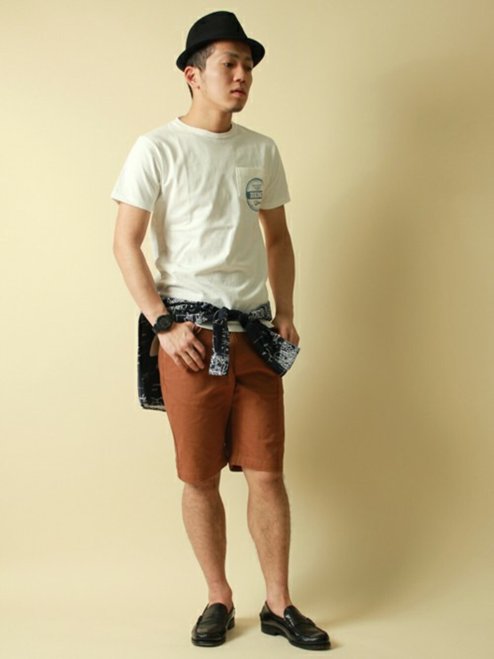 Tシャツ×ボトムスにシンプルコーデに腰巻をプラスしたスタイル。 ちょっとそこまでお出かけ・・・そんなときにマストなコーデです!