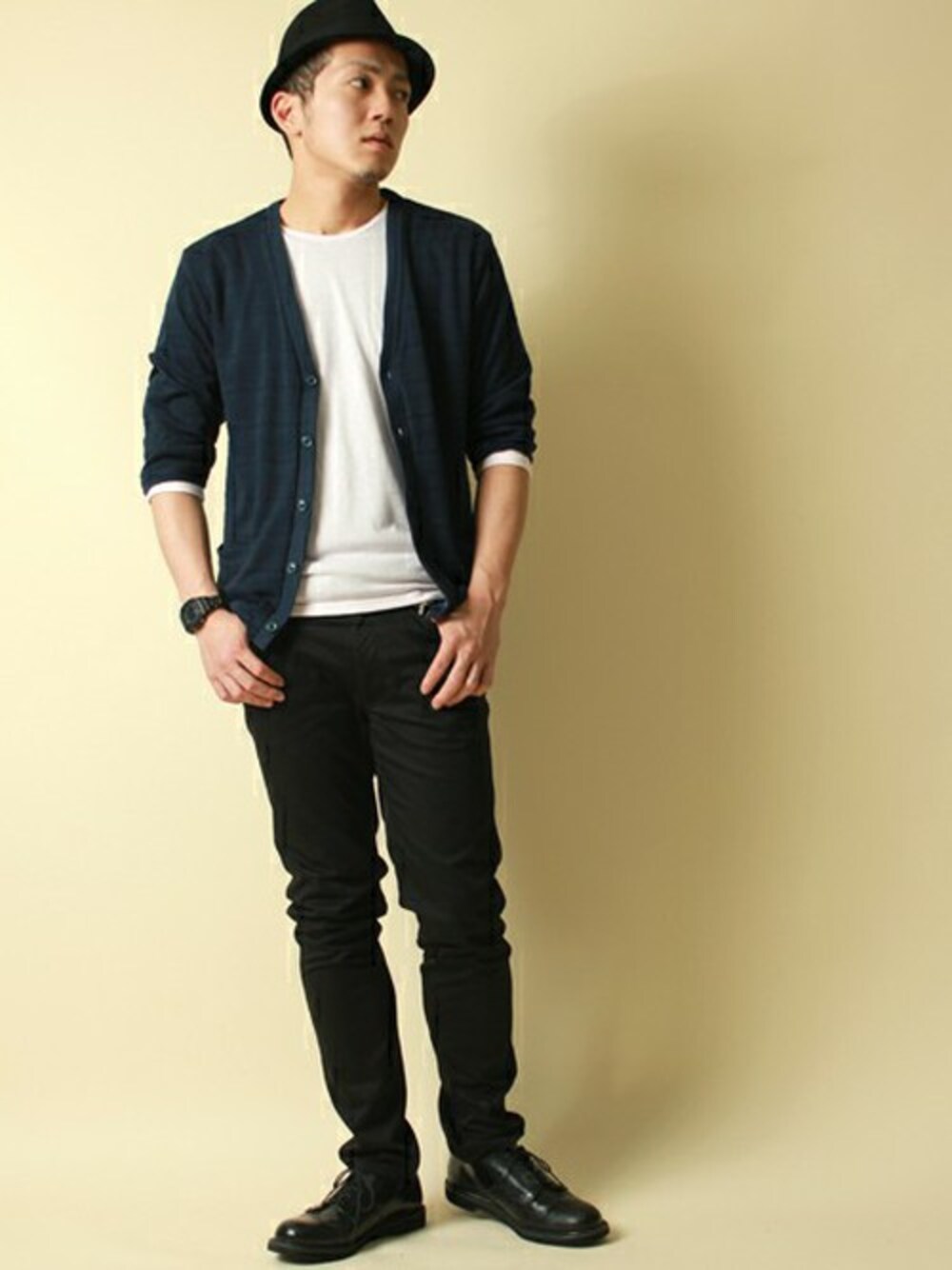 無地TEE×カーディガンのコーディネート。 シンプルな大人リゾートアイテムです。