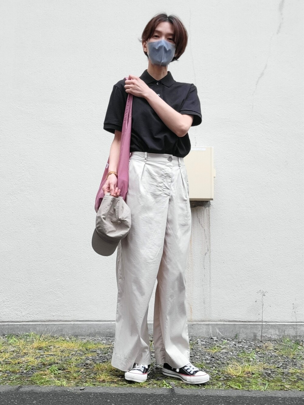 UNIQLOドライカノコポロシャツ→Mサイズ Mだとタックインが楽に Lサイズも肩に余裕ができて好き