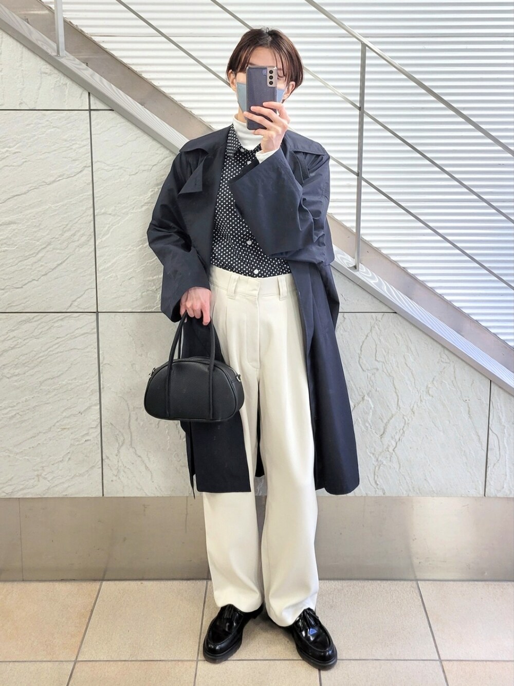 水玉のシャツとトレンチコート。 フォルダに入れて下さった皆さま、ありがとうございます❕